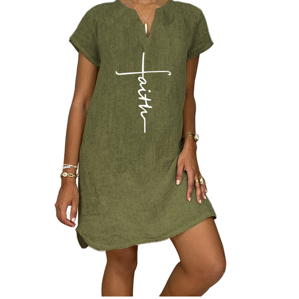 Be the first to review “Summer Loose Print Short-sleeved V-neck Cotton And Linen Dress Women’s Clothing”